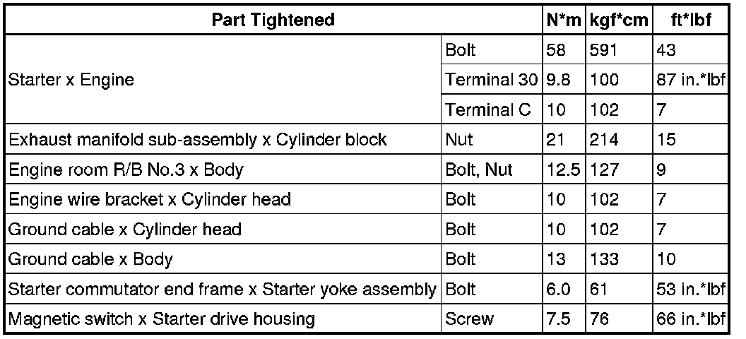 SERVICE SPECIFICATIONS: 4GR-FSE STARTING: TORQUE SPECIFICATIONS