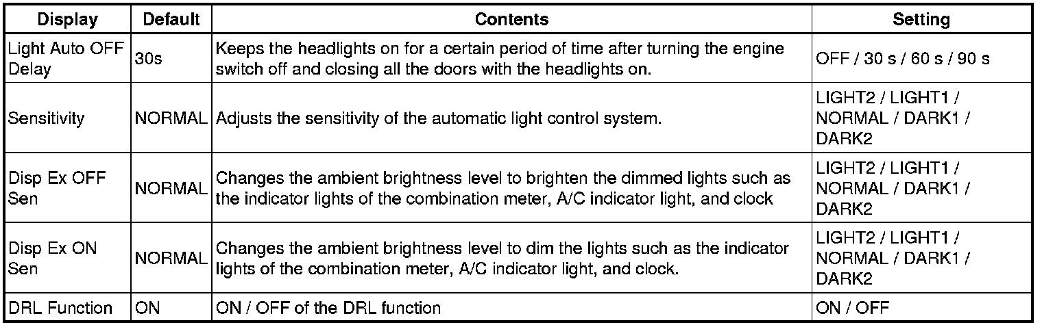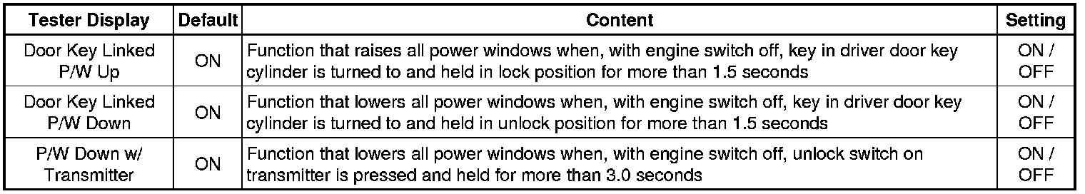 *1: This function is linked with the power window key-linked function. If the power window key-linked function is set to OFF, the sliding roof key-linked function will not operate even when it is set to ON.