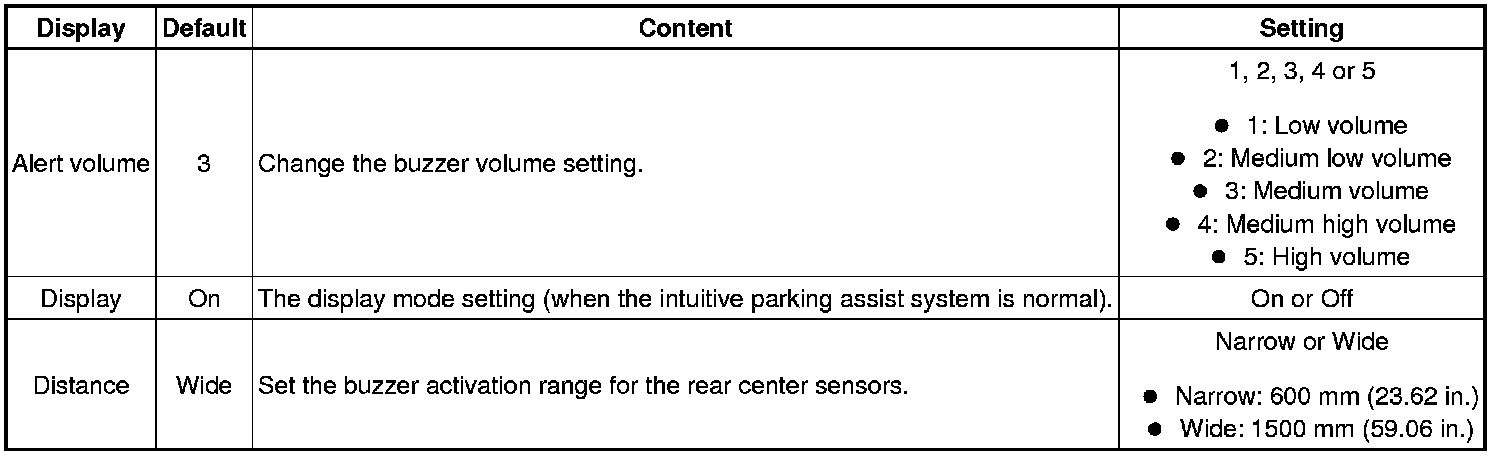 * These buzzers should be on for safe driving. Perform these procedures only if it is necessary to set the buzzer off (disabled).