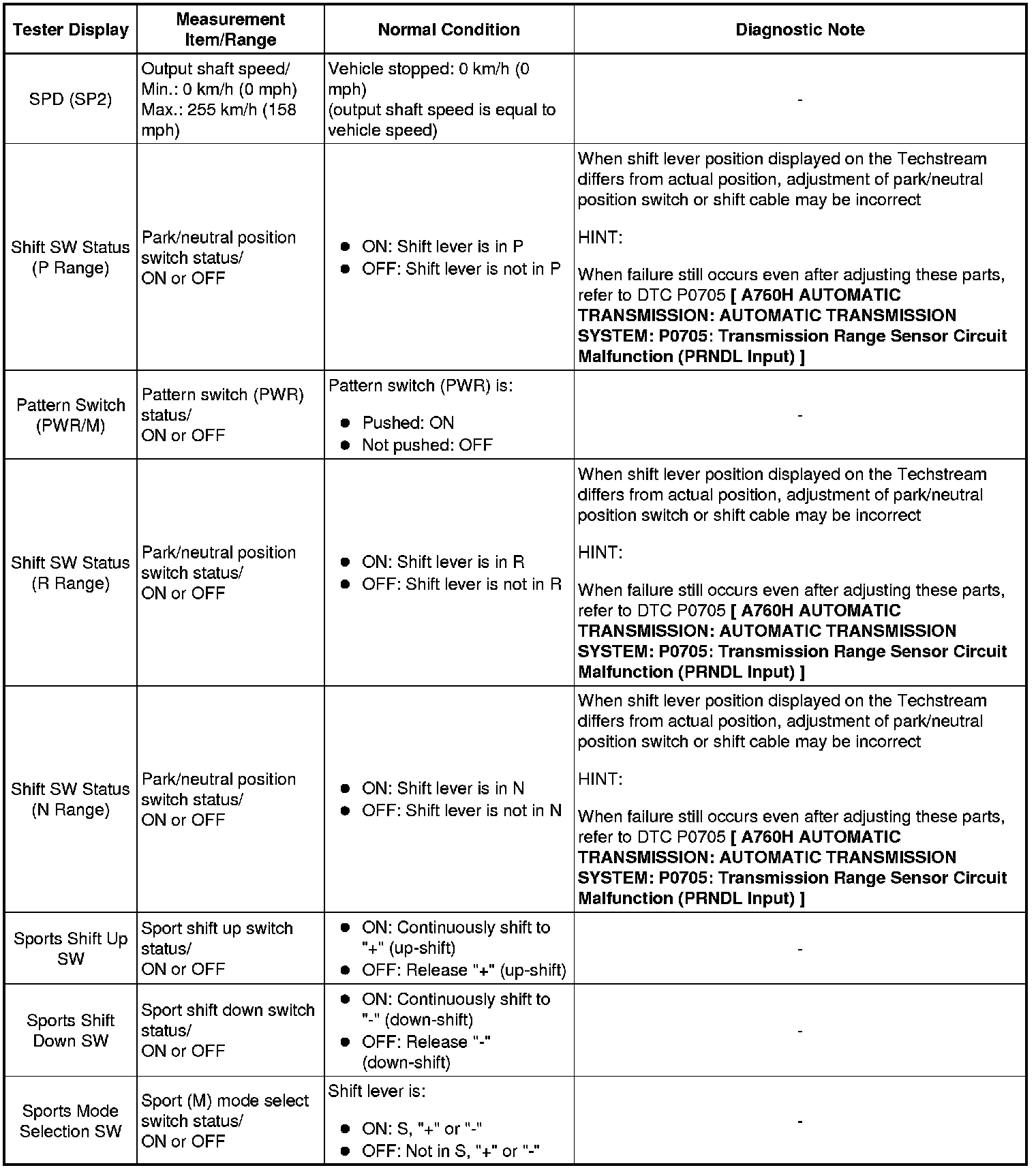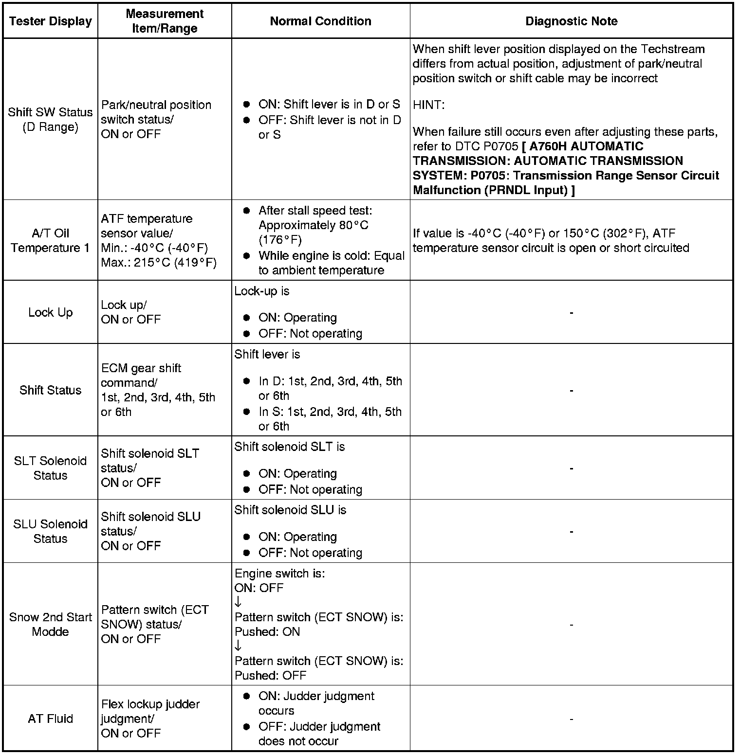 A760H AUTOMATIC TRANSMISSION: AUTOMATIC TRANSMISSION SYSTEM (for 4GR-FSE): DATA LIST / ACTIVE TEST
