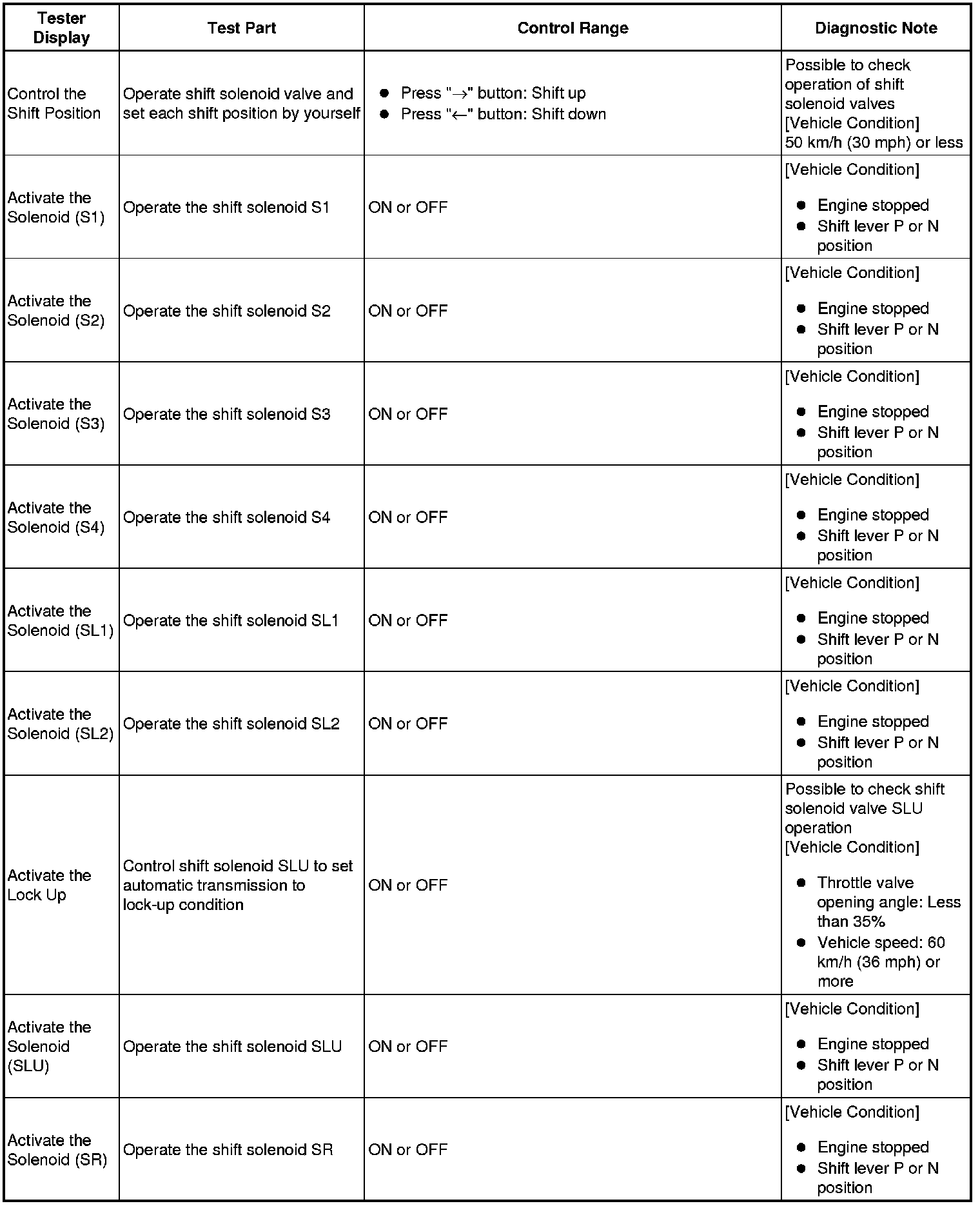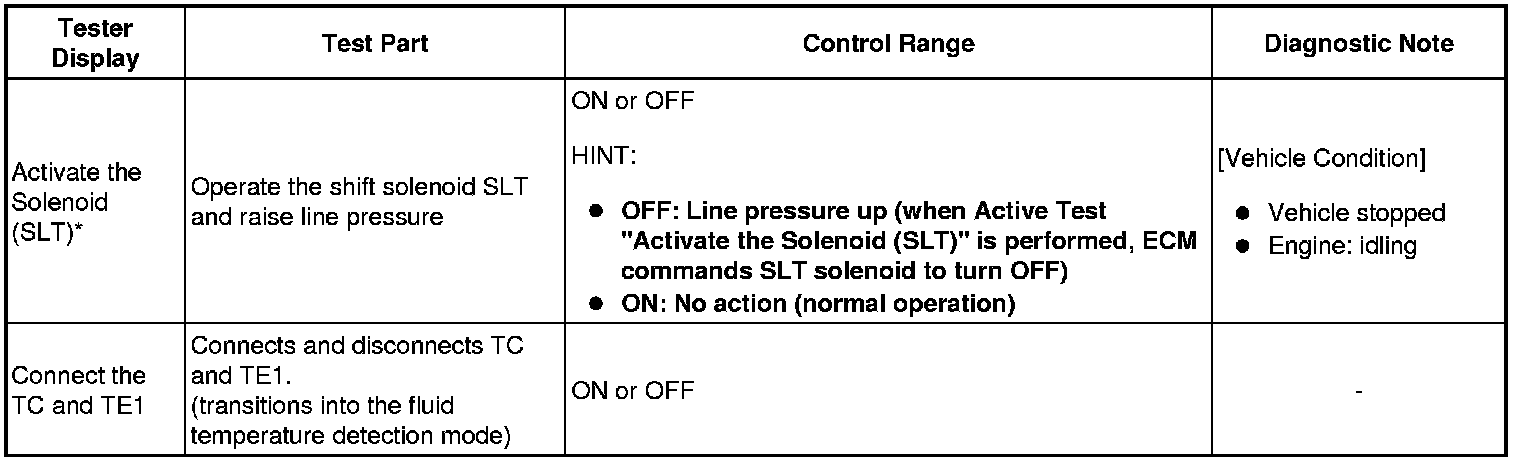 *: "Activate the Solenoid (SLT)" in the Active Test is performed to check the line pressure changes by connecting the SST to the automatic transmission, which is used in the HYDRAULIC TEST Hydraulic Test as well.