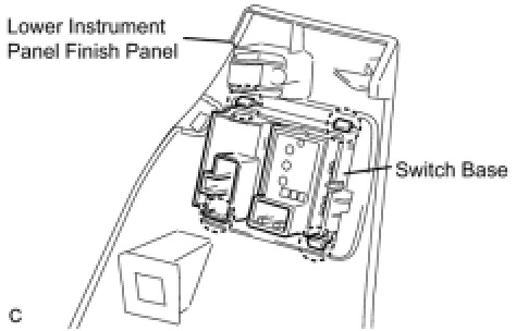 (a) Engage the 4 claws and install the switch base to the lower instrument panel finish panel.