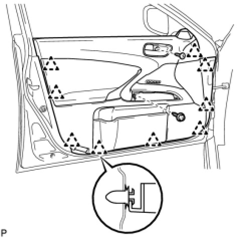 (d) Engage the 9 clips and install the front door trim board to the front door panel.