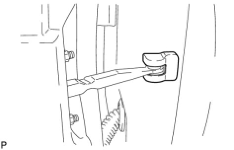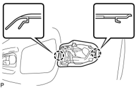 (d) Engage the 2 claws of the front door outside handle cover to the front door lock cylinder to install the cover.