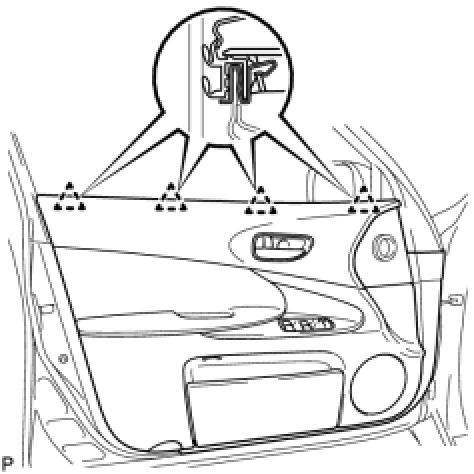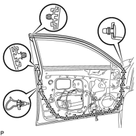(c) Engage the front door trim board with the 4 clips of the front door inner glass weatherstrip.