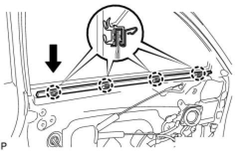(a) Engage the 4 claws and install the front door inner glass weatherstrip.