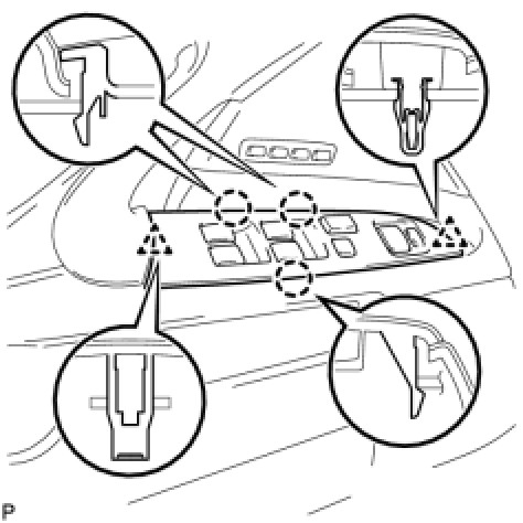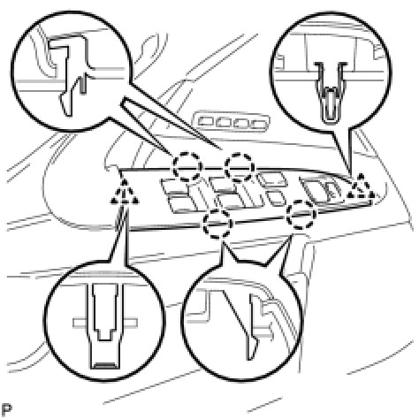 (2) Engage the 4 claws and 2 clips, and install the power window regulator master switch assembly.
