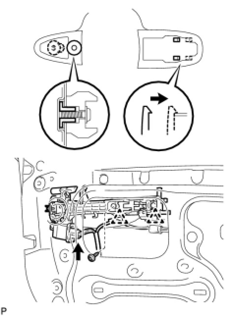 (2) Engage the 3 claws and 2 clips, and install the power window regulator master switch assembly.