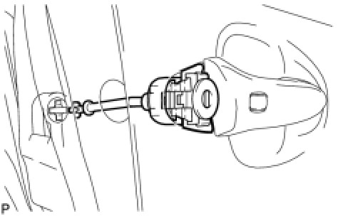 Make sure that the front door lock cylinder rod is inserted into the front door lock assembly.