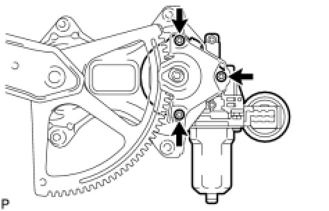 (a) Using a "torx" driver (T25), install the power window regulator motor sub-assembly front with the 3 screws.