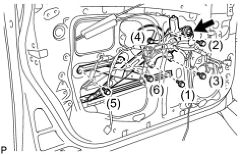(d) Tighten the 6 bolts in the order shown in the illustration to install the front window regulator.