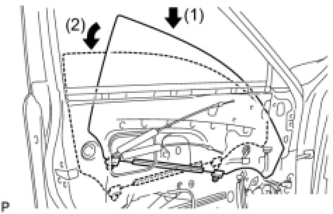(a) Insert the front door glass sub-assembly into the front door panel along the front door glass run as indicated by the arrows in the illustration.