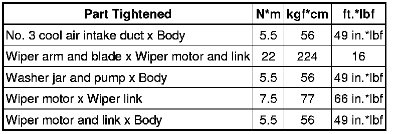 SERVICE SPECIFICATIONS: WIPER AND WASHER: TORQUE SPECIFICATIONS
