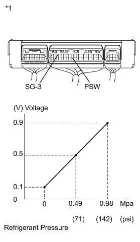 If the measured voltage is not within the normal range, there may be a malfunction in the A/C amplifier, A/C pressure sensor, or wire harness. It is also possible that the amount of refrigerant may not be appropriate.
