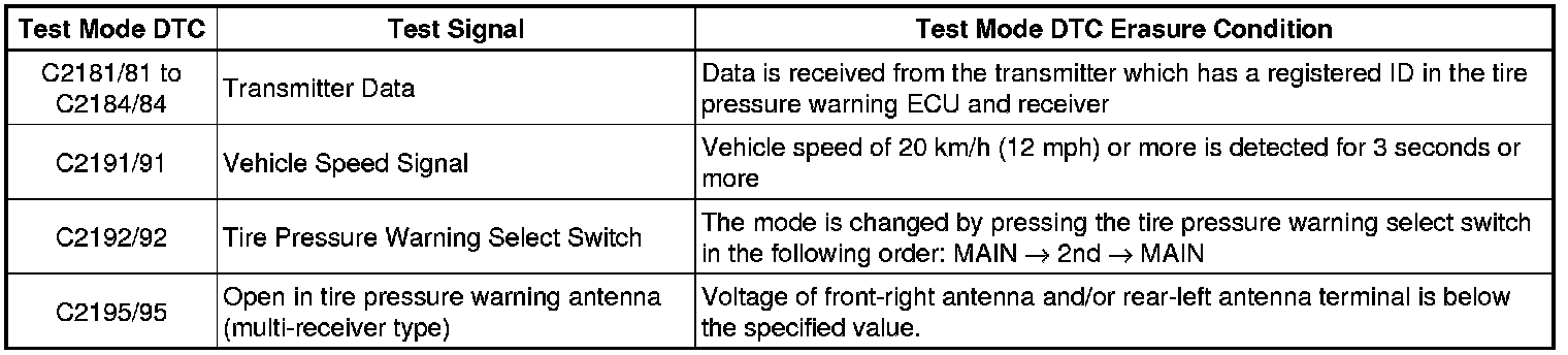 After completing signal check for each inspection item, the DTCs for systems that are determined to be normal by the tire pressure warning ECU and receiver will be cleared.