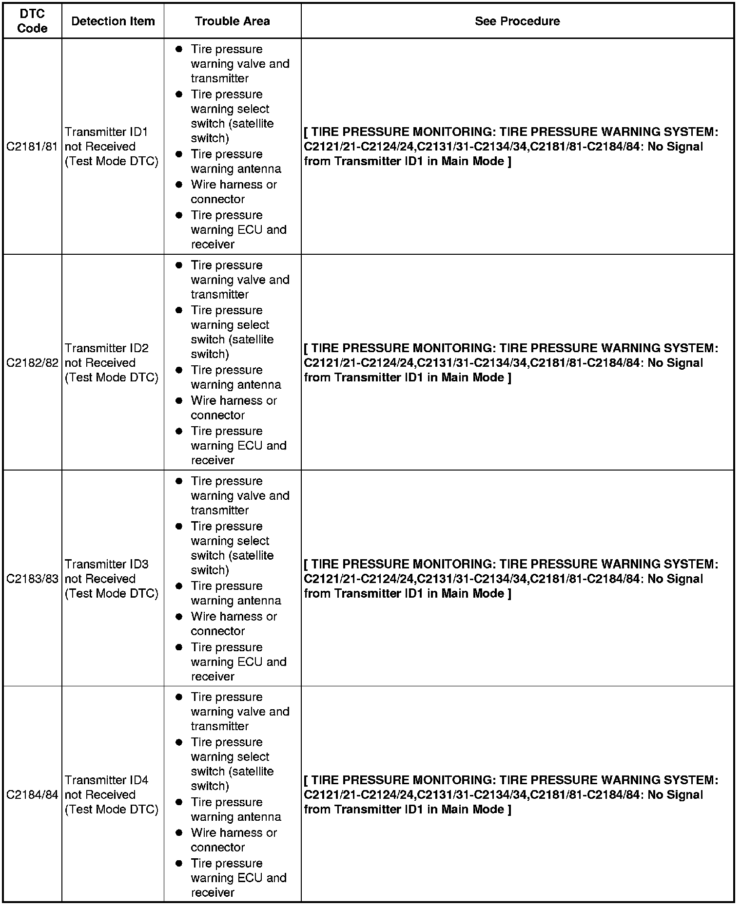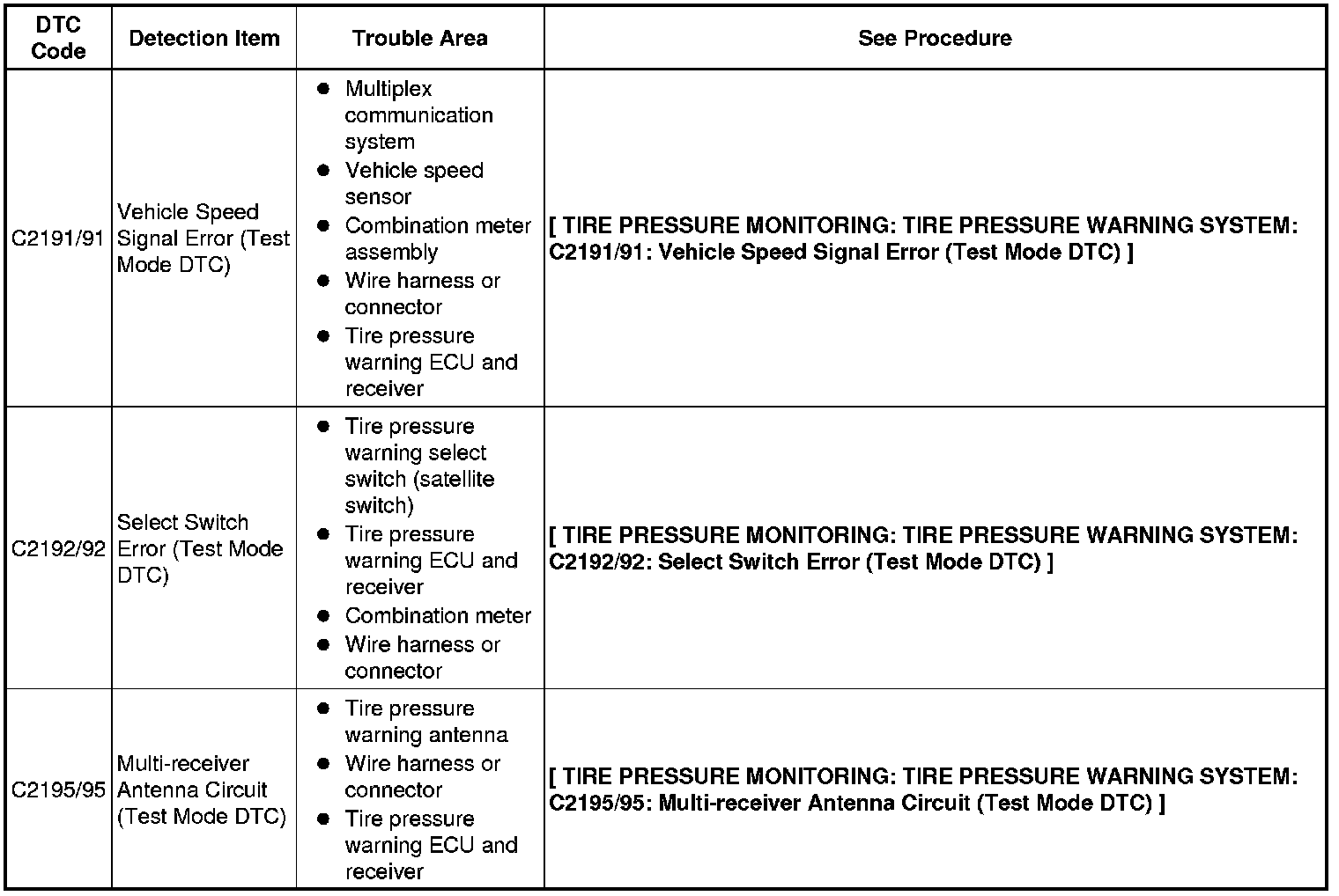 TIRE PRESSURE MONITORING: TIRE PRESSURE WARNING SYSTEM: TEST MODE PROCEDURE