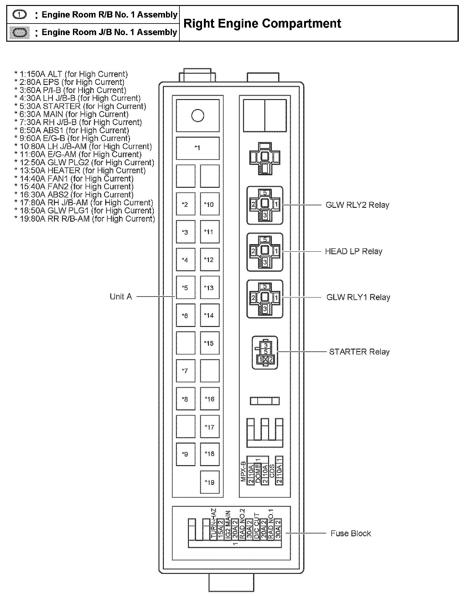Engine Room R/B No.1 Assembly, Engine Room J/B No.1 Assembly - Right Engine Compartment: