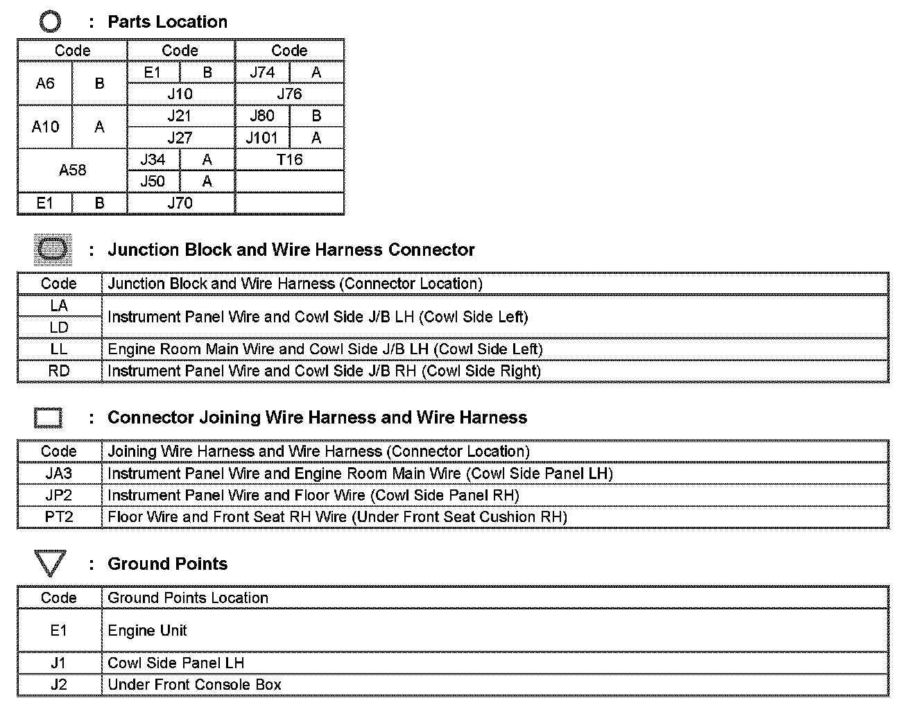 Locations: The locations of components, connectors, ground points, and splices referred to within these diagrams can be found at Vehicle Locations. Locations