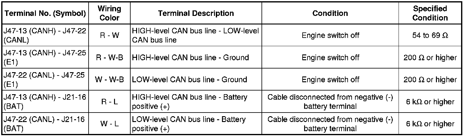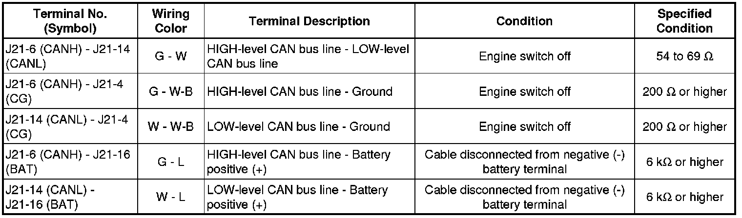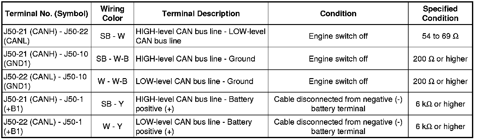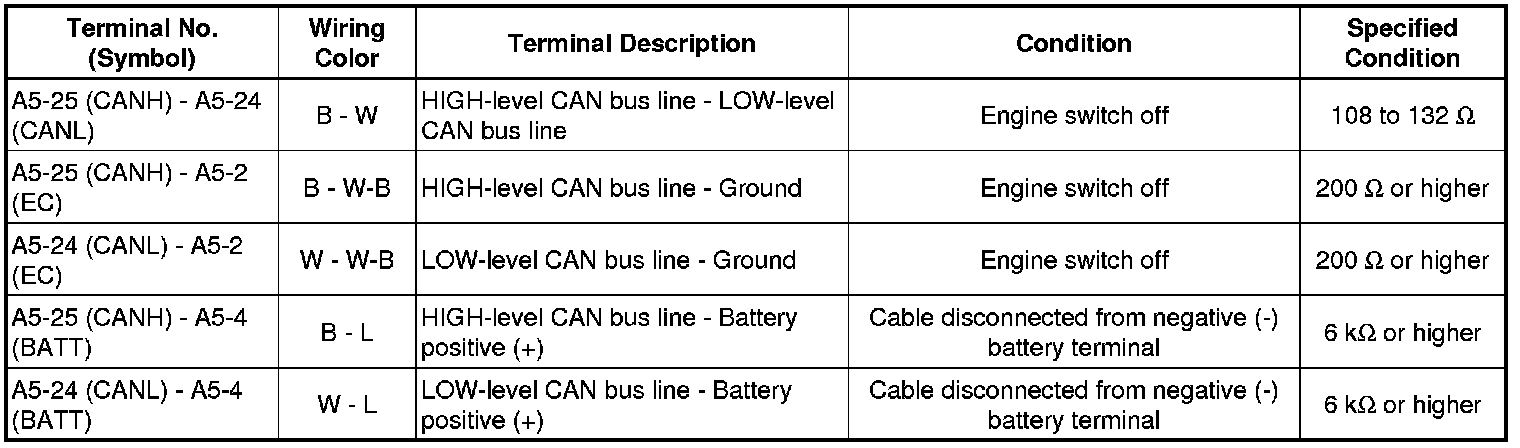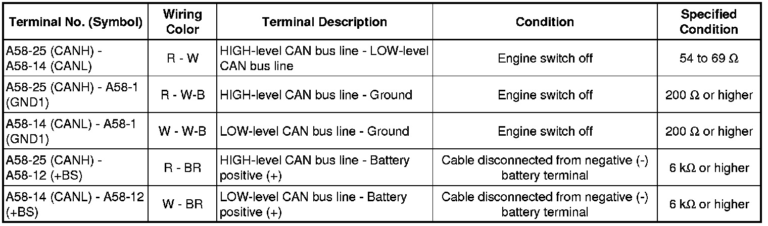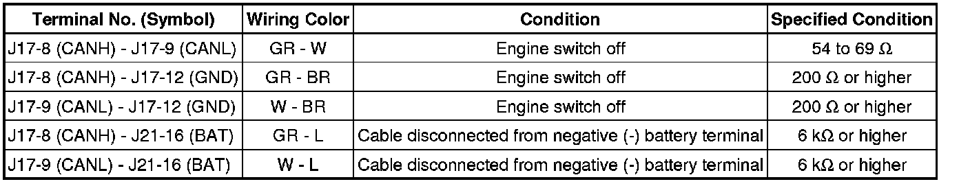 * Turn the engine switch off before measuring the resistances between CAN bus main wires and between CAN bus branch wires.