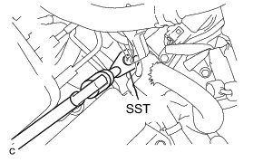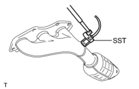 (a) Using SST, remove the air fuel ratio sensor (for Bank 2 Sensor 1) from the exhaust manifold LH.