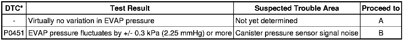 If any EVAP system DTCs are set, the malfunctioning area can be determined using the following table.
