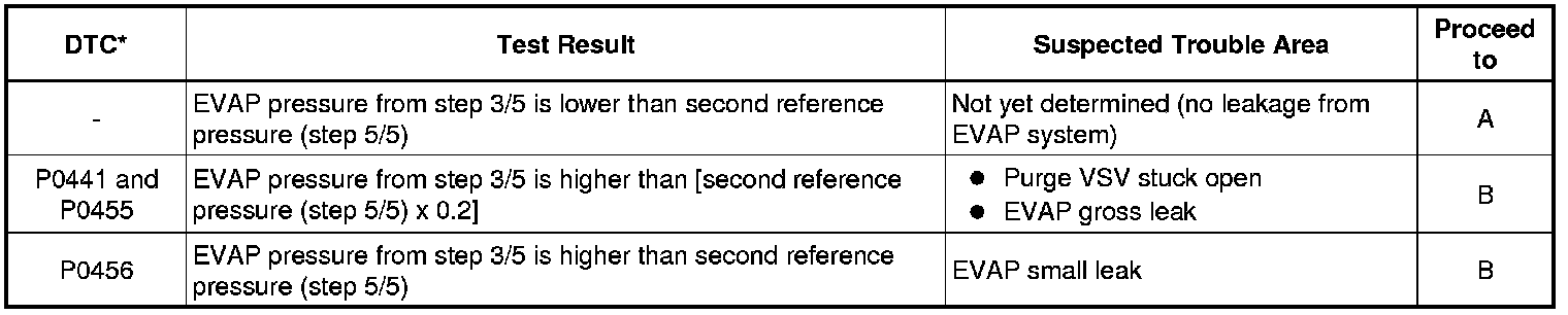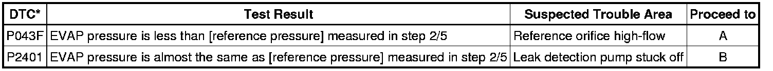 (b) Compare the EVAP pressure in step 3/5 and the second reference pressure (step 5/5).