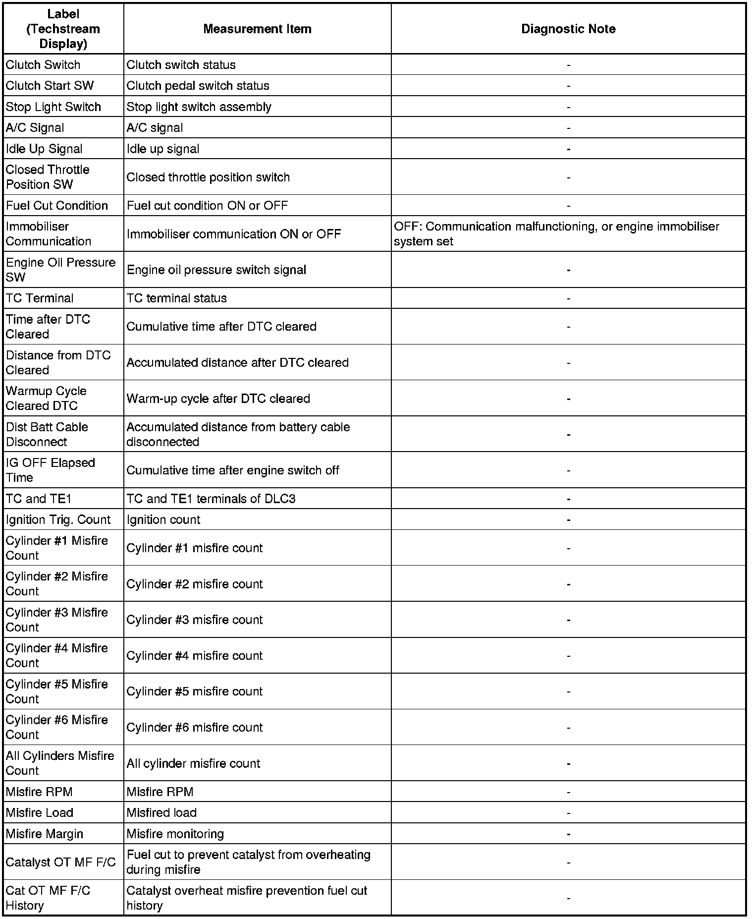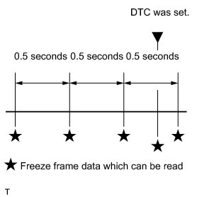 The ECM records engine conditions in the form of freeze frame data every 0.5 seconds. Using the Techstream, 5 separate sets of freeze frame data, including the data values at the time when the DTC was set, can be checked.