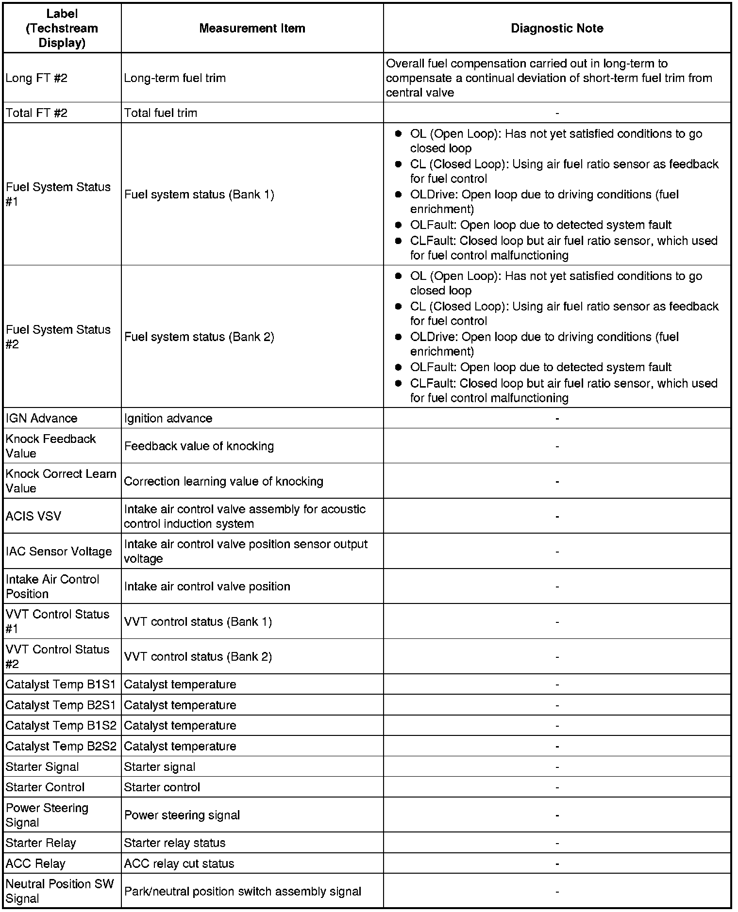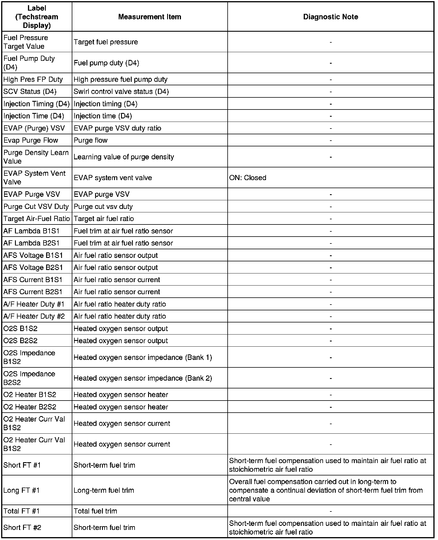 4GR-FSE ENGINE CONTROL: SFI SYSTEM: FREEZE FRAME DATA