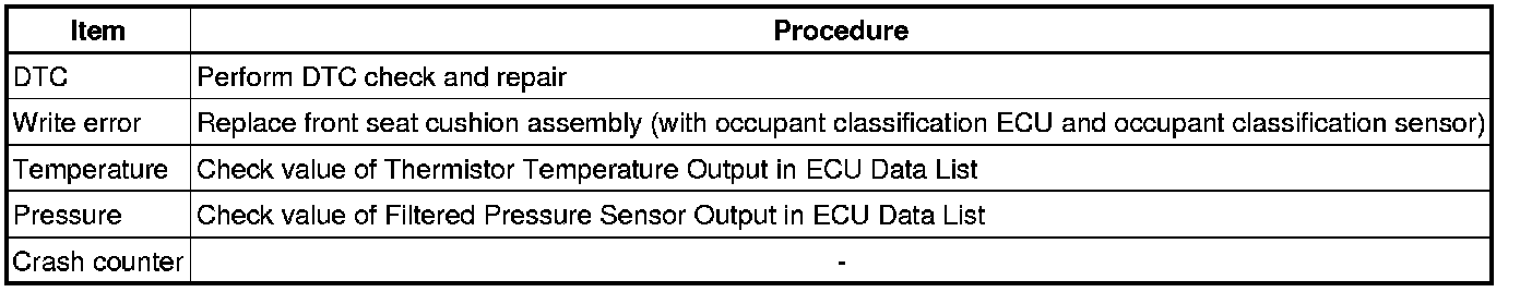 * If After Exchange is selected before the previous ECU data are stored in the Techstream, the display screen returns to CONDITION SELECT ECU: Occupant Detect.