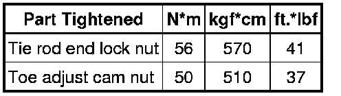 SPECIFICATIONS: ALIGNMENT / HANDLING DIAGNOSIS: TORQUE SPECIFICATIONS