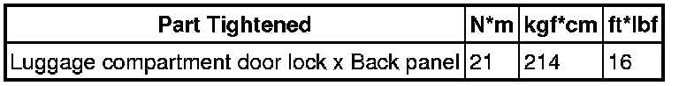 SPECIFICATIONS: DOOR LOCK: TORQUE SPECIFICATIONS
