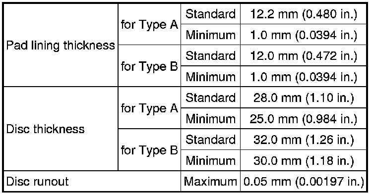 SPECIFICATIONS: BRAKE (FRONT): SERVICE DATA