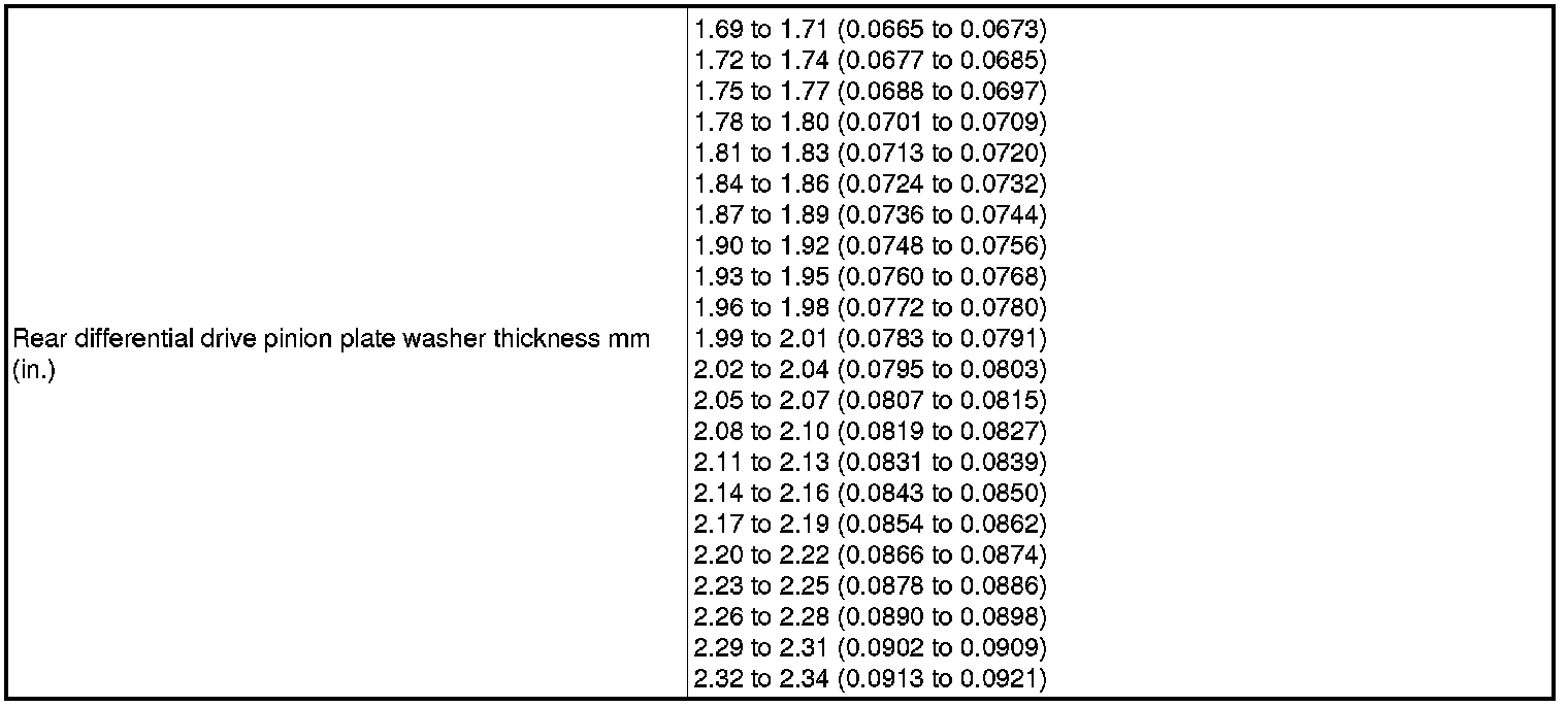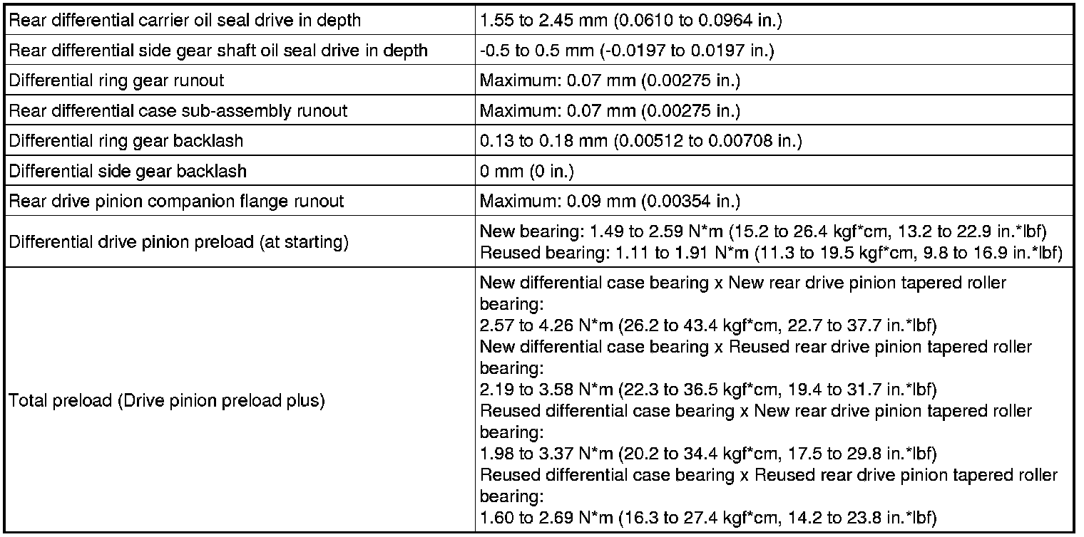 SPECIFICATIONS: AXLE AND DIFFERENTIAL: SERVICE DATA