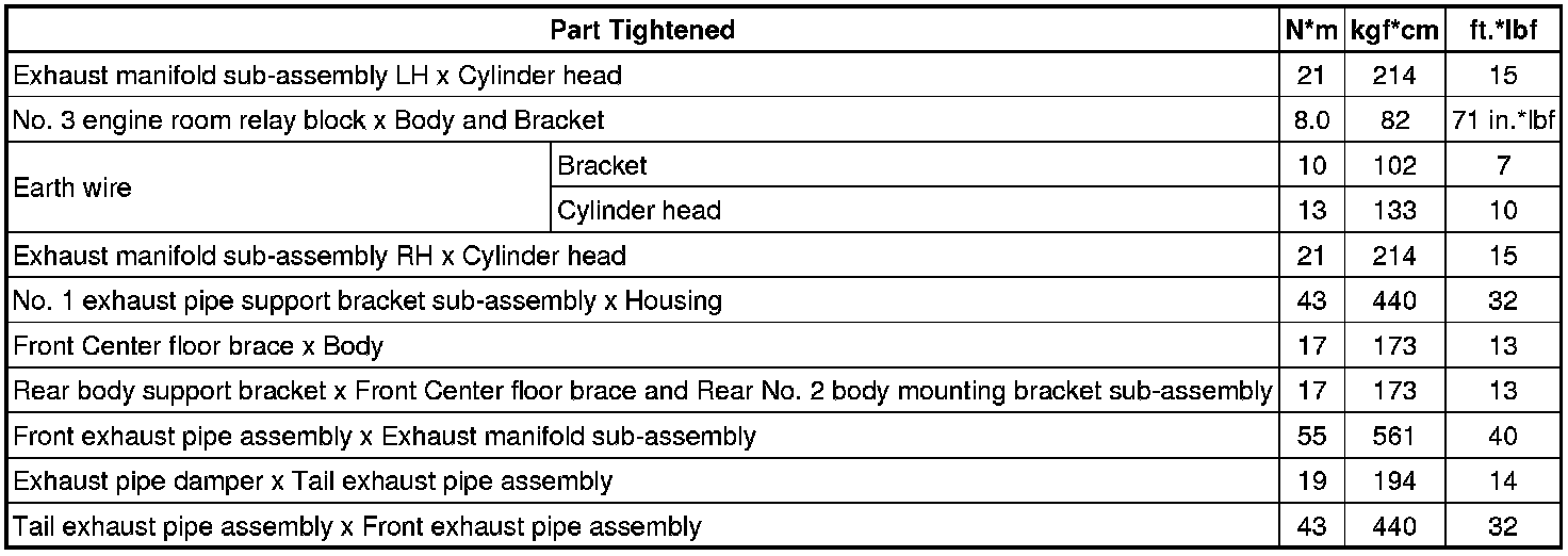 SPECIFICATIONS: 4GR-FSE INTAKE / EXHAUST: TORQUE SPECIFICATIONS