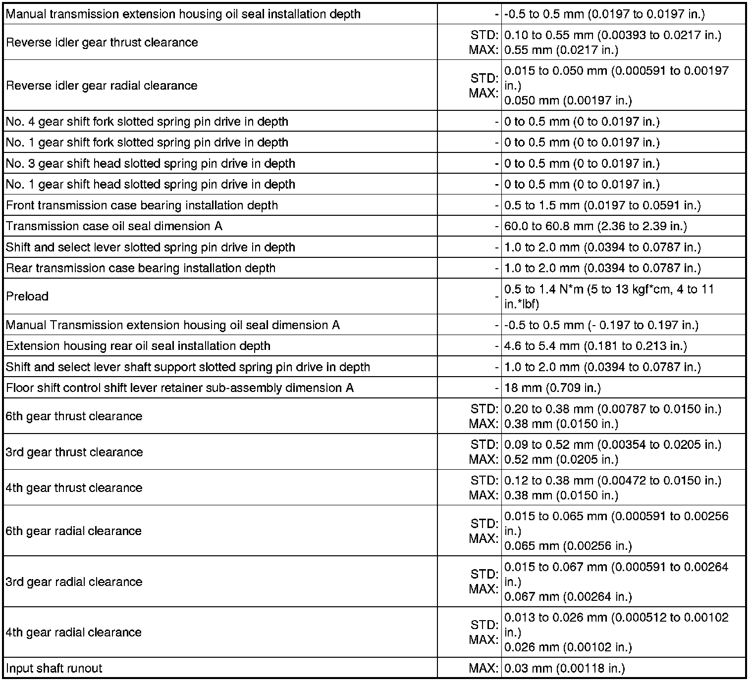 SPECIFICATIONS: RA62 MANUAL TRANSMISSION / TRANSAXLE: SERVICE DATA