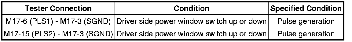 NG -- INSPECT POWER WINDOW REGULATOR MASTER SWITCH ASSEMBLY (PULSE SENSOR POWER SOURCE)