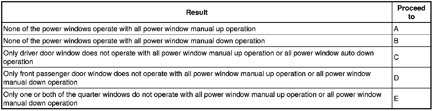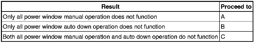 * The power window control system uses BEAN communication. Inspect the communication function by following How to Proceed with Troubleshooting How To Proceed With Troubleshooting. Troubleshoot the power window control system after confirming that the communication system is functioning properly.