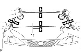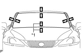 (3) Place reference marks between the glass and vehicle body.