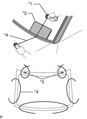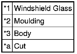 * There are No. 1 and No. 2 stoppers on the windshield glass as shown in the illustration. Be careful not to damage the windshield glass when cutting off the adhesive.