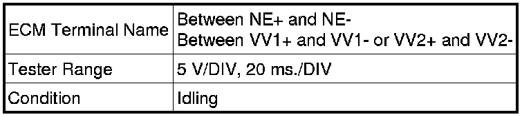 Crankshaft position sensor and VVT sensor for exhaust camshaft: