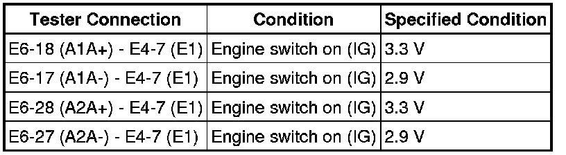 (a) Measure the voltage between the terminals of the ECM connectors.