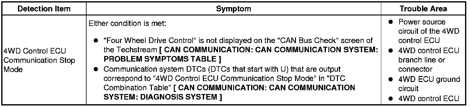 CAN COMMUNICATION: CAN COMMUNICATION SYSTEM: 4WD Control ECU Communication Stop Mode