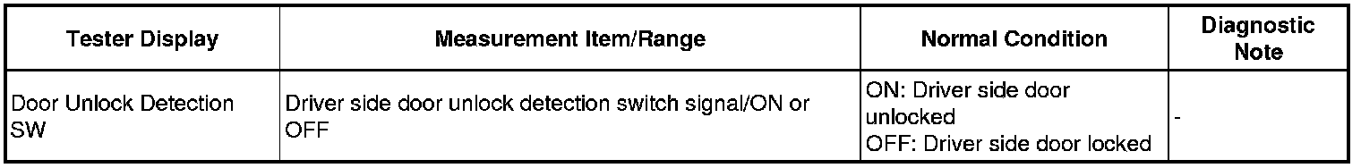 2. READ VALUE USING TECHSTREAM (DOOR UNLOCK DETECTION SWITCH)