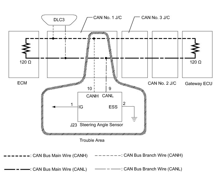 1. CHECK FOR OPEN IN CAN BUS WIRE (STEERING ANGLE SENSOR BRANCH WIRE)