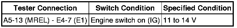 When the engine switch is turned on (IG), the battery voltage is applied to terminal IGSW of the ECM. The ECM MREL output signal causes a current to flow to the coil, closing the contacts of the integration relay (EFI MAIN relay) and supplying power to terminal +B and +B1 of the ECM.