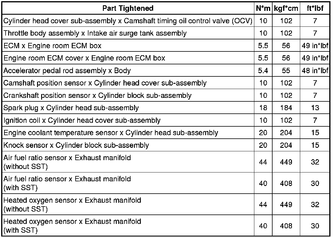 SPECIFICATIONS: 2GR-FSE ENGINE CONTROL: TORQUE SPECIFICATIONS