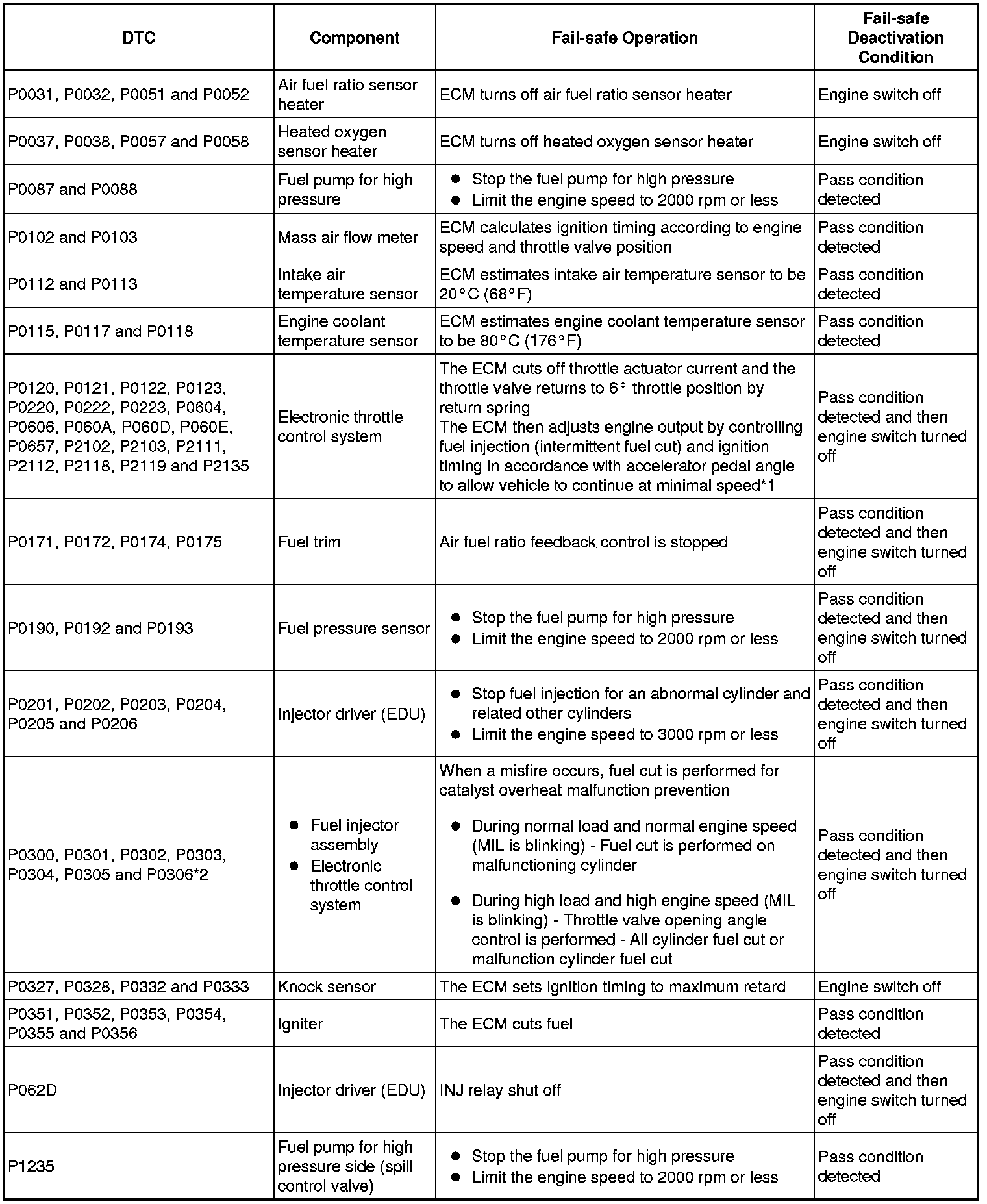 * *2: Misfire related fail-safe operations occur when catalyst overheat malfunctions occur.