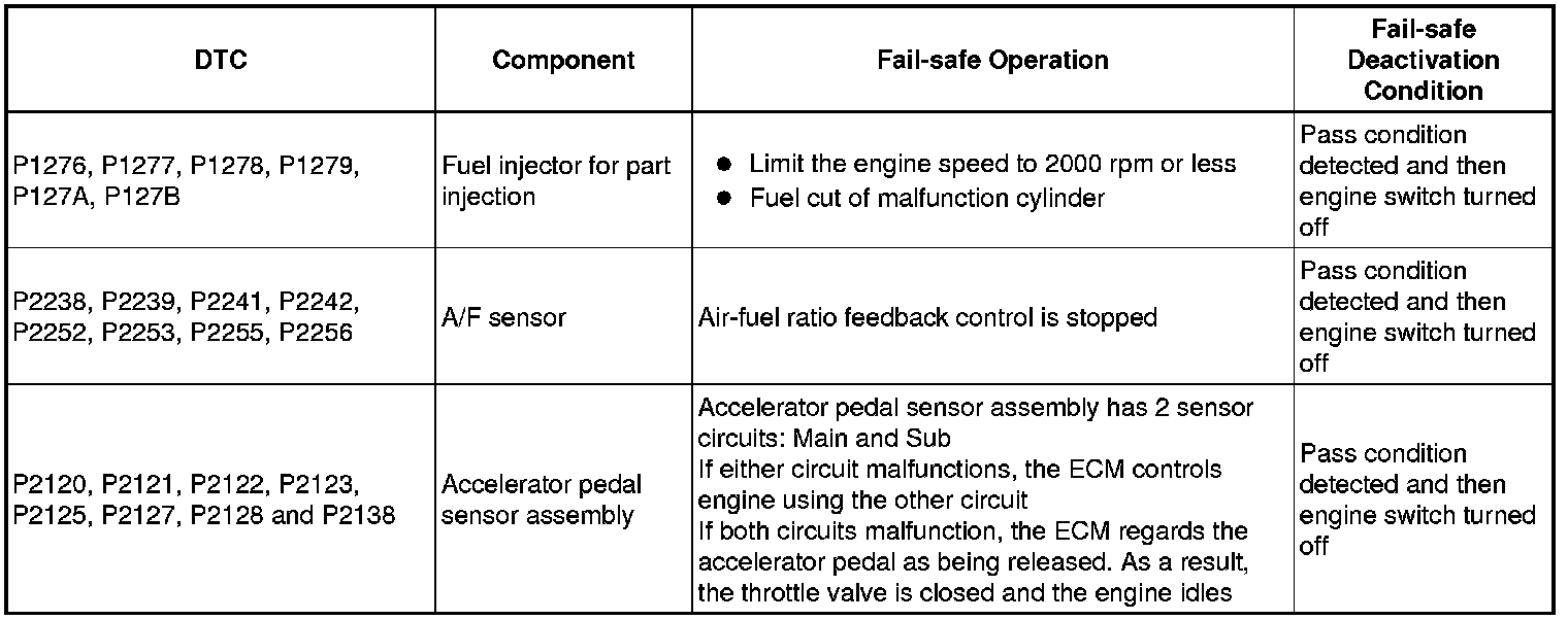 If any of the following DTCs are set, the ECM enters fail-safe mode to allow the vehicle to be driven temporarily.