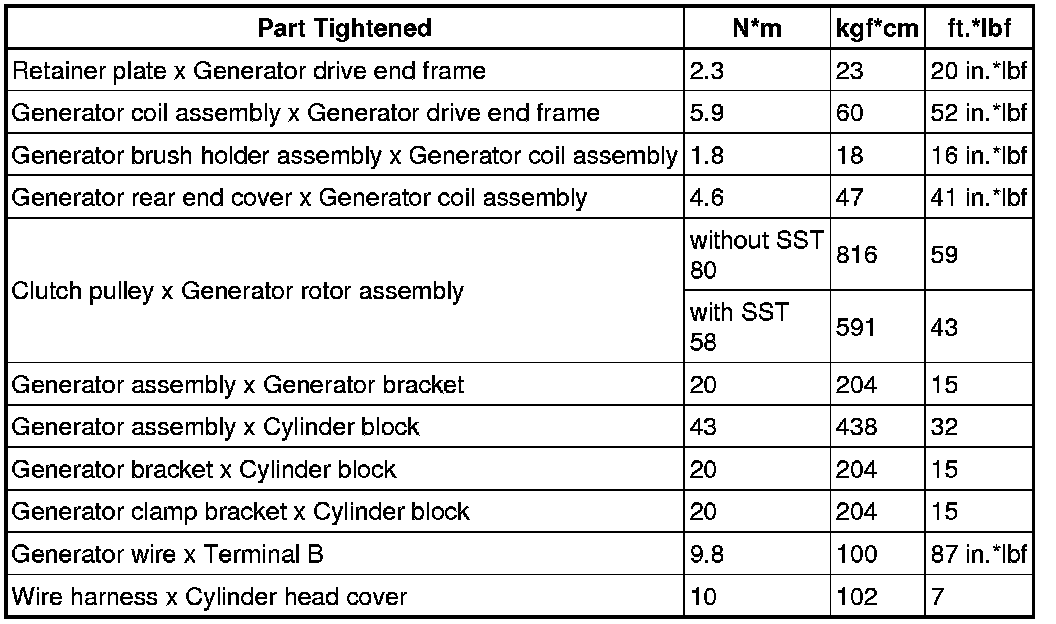 SPECIFICATIONS: 2GR-FSE BATTERY / CHARGING: TORQUE SPECIFICATIONS