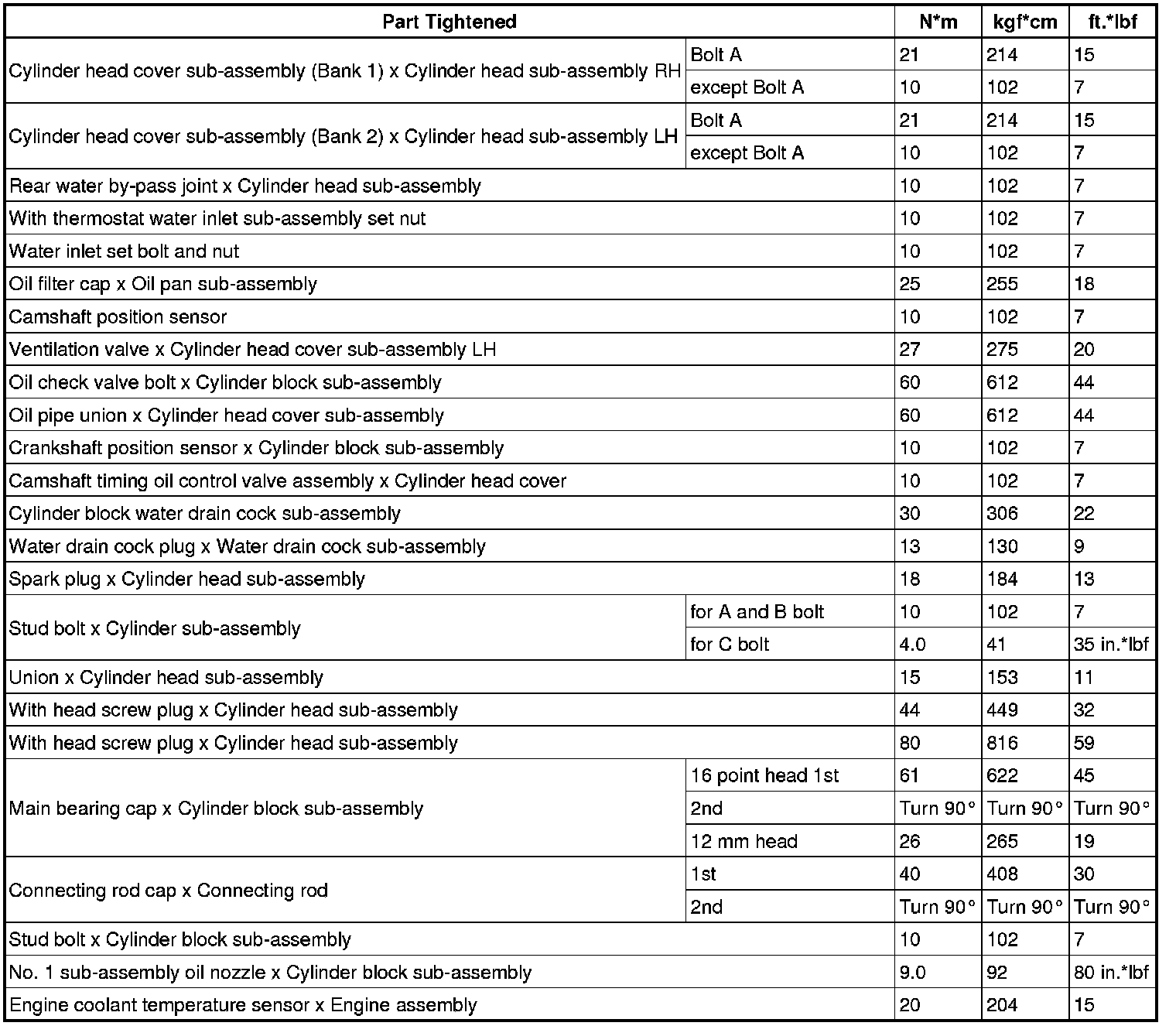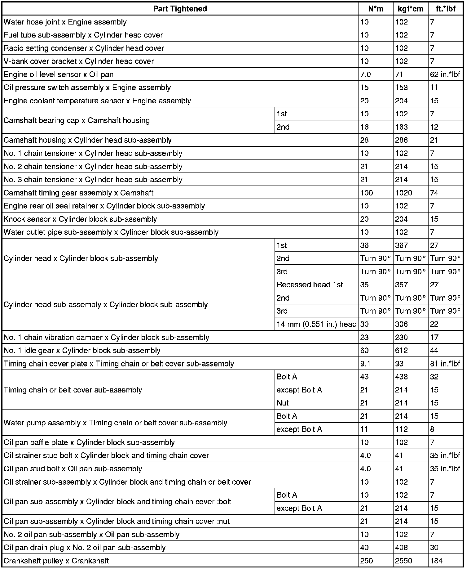 SPECIFICATIONS: 2GR-FSE ENGINE MECHANICAL: TORQUE SPECIFICATIONS
